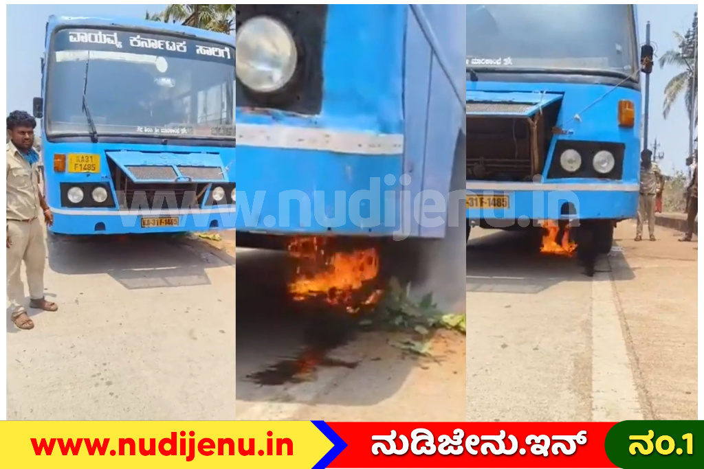 ಭಟ್ಕಳ: ಕುಮಟಾದಿಂದ ಭಟ್ಕಳಕ್ಕೆ ತೆರಳುತ್ತಿದ್ದ ಭಟ್ಕಳ ಡಿಪೋಗೆ ಸೇರಿದ ಕೆಎಸ್ಆರ್ಟಿಸಿ (KSRTC) ಬಸ್ಸಿನಲ್ಲಿ ದಿಢೀರ್ ಬೆಂಕಿ ಕಾಣಿಸಿಕೊಂಡು ಆತಂಕ ಸೃಷ್ಟಿಸಿದ ಘಟನೆ ಮುರುಡೇಶ್ವರದ ಟೆಲಿಫೋನ್ ಕಚೇರಿ ಎದುರು ನಡೆದಿದೆ. ಆದರೆ, ಸ್ಥಳೀಯರ ತ್ವರಿತ ಕಾರ್ಯಾಚರಣೆ ಹಾಗೂ ಸಮಯಪ್ರಜ್ಞೆಯಿಂದಾಗಿ ಬಸ್ಸಿನಲ್ಲಿದ್ದ ಎಲ್ಲಾ ಪ್ರಯಾಣಿಕರು ಪ್ರಾಣಾಪಾಯದಿಂದ ಪಾರಾಗಿದ್ದು, ಸಂಭವಿಸಬಹುದಾಗಿದ್ದ ಭಾರಿ ಅನಾಹುತವೊಂದು ಸ್ವಲ್ಪದರಲ್ಲೇ ತಪ್ಪಿದಂತಾಗಿದೆ.