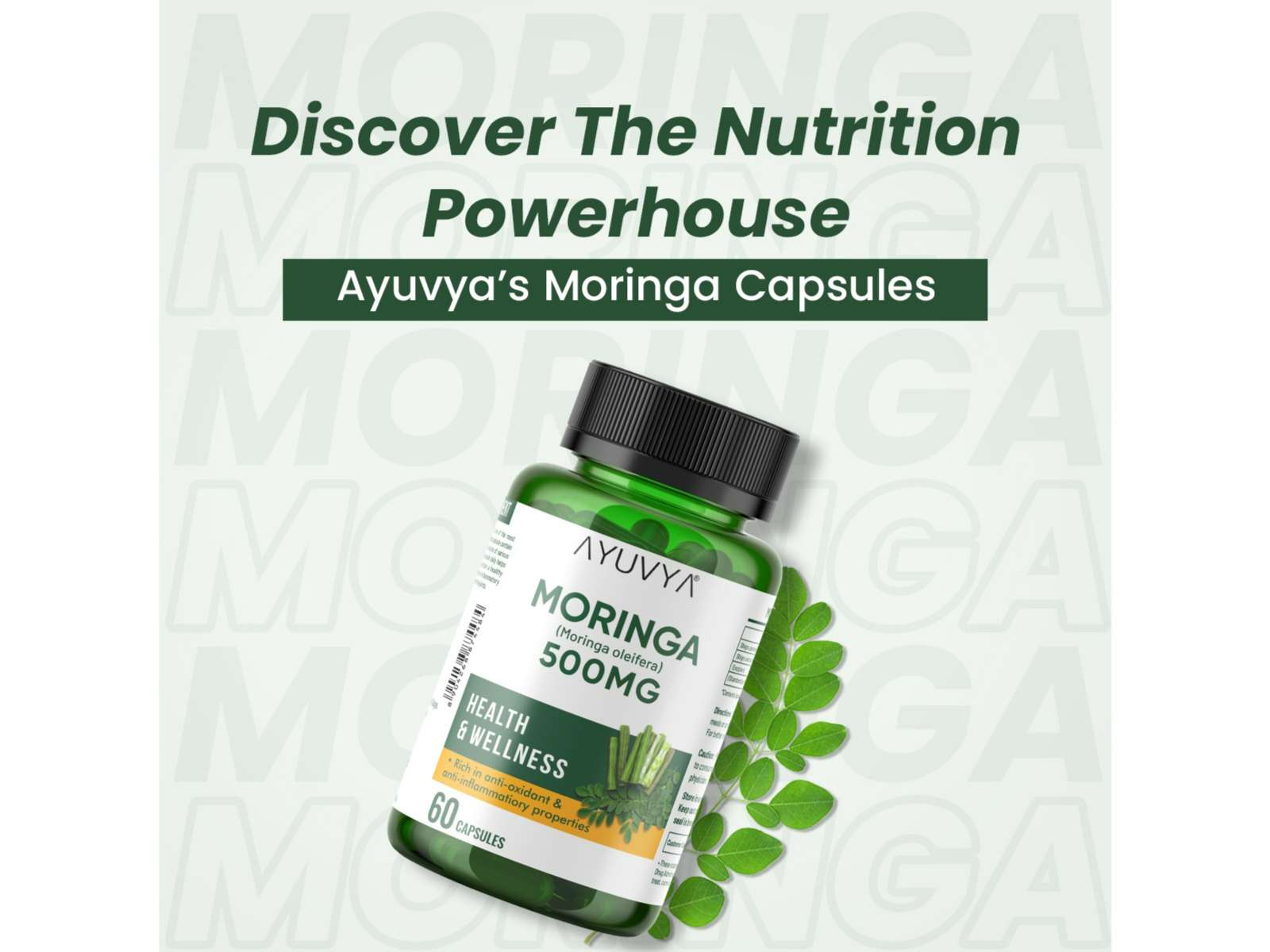 Ayuvya Moringa Capsules || 500mg Pure Moringa Oleifera Leaf Powder Extract – Nutrient-Rich Superfood for Immunity, Skin, Hair & Weight Management, 60 Capsules