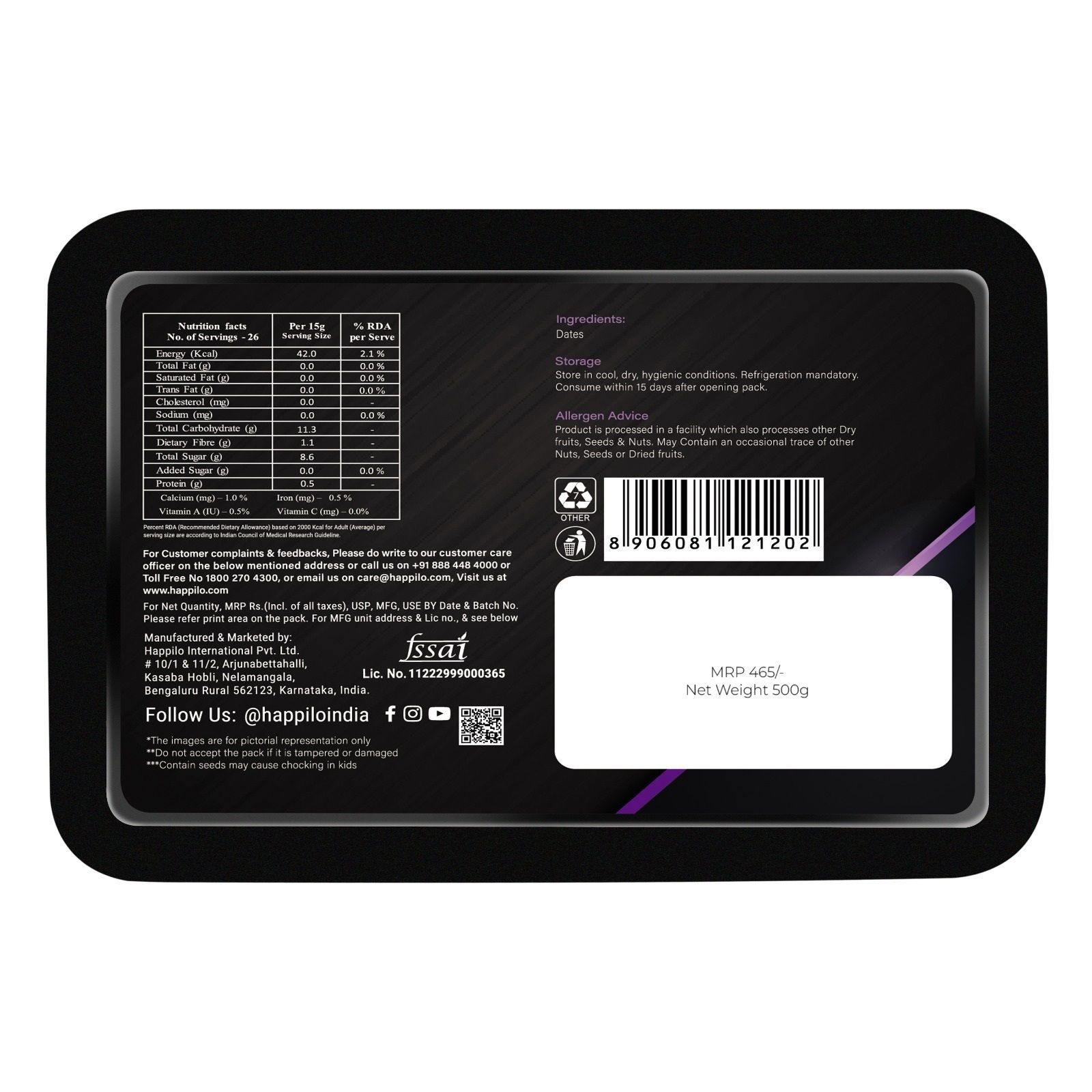 Happilo Premium Super Soft Kimia Dates 500g
