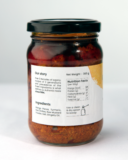 Authentic flavor: Our Mango Awakai is a traditional South Indian pickle that’s made with the finest quality mangoes and spices. It has a tangy and spicy flavor that’s sure to leave your taste buds tingling with delight. High-quality ingredients: We use only the freshest and highest quality mangoes, spices, and oils in our Mango Awakai. You can taste the difference in every bite. No artificial preservatives: We use only natural ingredients in our Mango Awakai pickle, without any artificial preservatives. This ensures that you get a healthy and tasty pickle that’s good for your body. Handcrafted with care: Our Mango Awakai is handcrafted with care, using traditional methods that ensure the best taste and texture. Each jar of pickle is made in small batches, so you know you’re getting a fresh product. Versatile: Our Mango Awakai is a versatile condiment that can be used as a side dish. It’s perfect for adding a tangy and spicy kick to your meals. Ingredients: Mango Pieces, Salt, Turmeric, Red Chillies, Sesame Oil, Raw Mustard Powder Did you know: Mangoes are a rich source of vitamins and antioxidants and are known to boost immunity and promote digestion. It helps in improving eye health and improves skin health Our pickle retains the nutritional benefits of mangoes, making it a healthy addition to your diet. Long shelf life: Our Mango Awakai when used with dry spoon has a long shelf life and can be stored in a cool, dry place for up to 12 months. You can enjoy the authentic taste of this pickle all year round! Transport yourself to the vibrant flavors of South India with our Mango Awakai. Order now and experience the authentic taste!