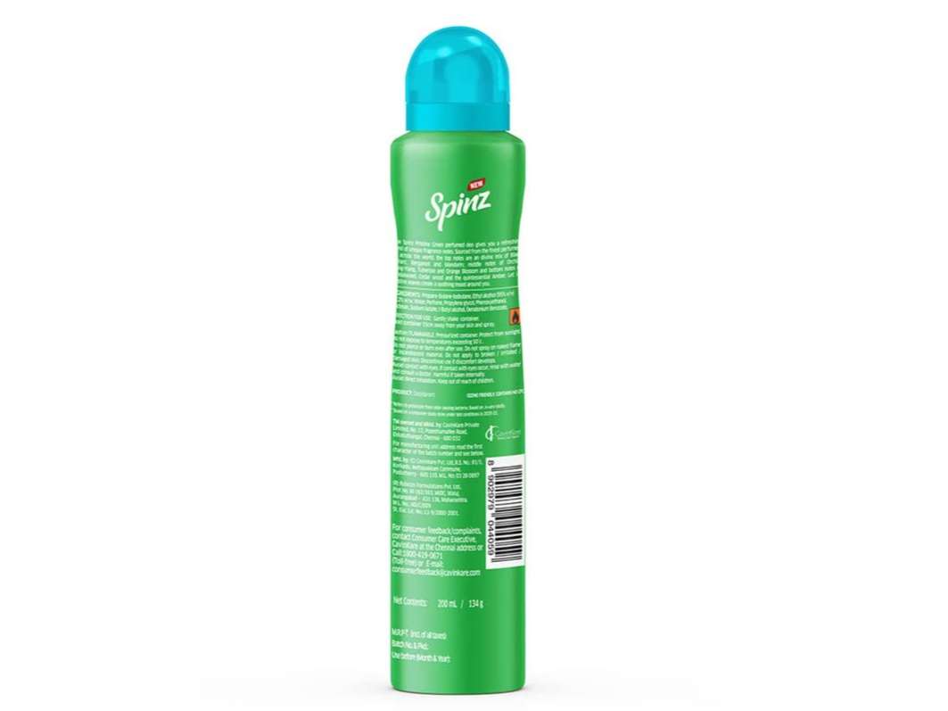 If you are looking for a premium Deo done crafted with exotic international fragrances, ensuring a long lasting freshness for 24 hours with body protection, then Spinz Pristine Green Perfumed Deo is crafted, specially for you. A perfect duo for women- Spinz Pristine Green Perfumed Deo is perfectly designed to bring elegance of sophisticated perfume and practicality of deodorant together. The nature inspired fresh scent helps you feel confident and rejuvenated the whole day, wherever your day might take you. If you are at work or at a social event, or maybe running daily errands, the Spinz Perfume provides a fresh bursting fragrance to ensure that not only you smell amazing but also feel confident all day long. Key Ingredients: Alcohol: Allows a quick drying and non greasy application, and acts as a base for fragrance Fragrance: a blend of international perfume that delivers a rich long lasting scent with a hint of sophistication Aqua: helps keep the skin hydrated and make sure that deodorant spreads evenly. Propellant for easy and uniform applications: It enables a fine mist spray and also gives a smooth and even coverage. Benefits: Freshness- that lasts long: Spinz Pristine Green Perfumed Deo has long lasting protection for 24 hours against sweat and body order, making this long lasting for women who lead very busy lives at work and even in person. International fresh fragrance: a vibrant scent derived from international perfumes Spinz Perfume delivers the fragrance that is refreshing and long, lasting with perfect crisp for daily wear, and also for special occasions. Gentle on skin: the formula for the Spinz Deo Is very perfectly designed to be gentle on the normal skin as well as sensitive skin. The alcohol-based fragrance evaporates quickly without causing an irritation, even at daily use. Controls sweat and Body Odour: The Spinz perfume deo Does not only mask body odour, but it actively works on controlling body sweat, which makes this duo ideal for you if you are reliant on deodorant to keep you dry and fresh throughout the day.