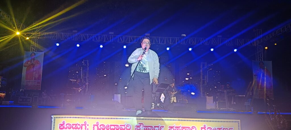 ಹೌದು… ಅಂಕೋಲಾ ತಾಲೂಕಿನ ಜೈಹಿಂದ್ ಮೈದಾನದಲ್ಲಿ ಅಂಕೋಲಾ ಕಾರವಾರ ವಿಧಾನಸಭಾ ಕ್ಷೇತ್ರದ ಮಾಜಿ ಶಾಸಕಿ ಹಾಗೂ ಬಿಜೆಪಿ ರಾಜ್ಯ ಉಪಾಧ್ಯಕ್ಷೆ ರೂಪಾಲಿ ಎಸ್ ನಾಯ್ಕ ಅವರ ಗೌರವಾಧ್ಯಕ್ಷತೆಯಲ್ಲಿ ಸಂಗಾತಿ ರಂಗಭೂಮಿ (ರಿ) ಇವರ ಆಶ್ರಯದಲ್ಲಿ ನಡೆಯುತ್ತಿರುವ 7 ನೇ ವರ್ಷದ ಅಂಕೋಲಾ ಉತ್ಸವ ಕಾರ್ಯಕ್ರಮದ ನಿಮಿತ್ತ ಆಗಮಿಸಿದ ಬಾಲಿವುಡ್,ಸ್ಯಾಂಡಲ್ ವುಡ್ ಹಾಗೂ ಟಾಲಿವುಡ್ ಚಲನಚಿತ್ರಗಳ ಅದ್ಭುತ ಕಂಠದಾನದಿಂದ ಗುರುತಿಸಿಕೊಂಡಿರುವ ಖ್ಯಾತ ಹಿನ್ನಲೆ ಗಾಯಕ ಕುನಾಲ್ ಗಾಂಜಾವಾಲಾ ರ ಡ್ರೀಮ್ಸ್ ಎಂಟರ್ಟೈನ್ಮೆಂಟ್ ಮುಂಬಯಿ ಹಾಗೂ ಬೆಂಗಳೂರು ತಂಡದವರಿಂದ ಸಂಗೀತ ಮತ್ತು ನ್ರತ್ಯ ಸಂಜೆ ಕಾರ್ಯಕ್ರಮದಲ್ಲಿ ಕನ್ನಡ,ಹಿಂದಿ ಹಾಗೂ ಹಲವಾರು ಬಾಷೆಗಳ ಹಾಡುಗಳನ್ನು ಅದ್ಭುತವಾಗಿ ಹಾಡಿ ನೆರೆದಿರುವ ಪ್ರೇಕ್ಷಕರನ್ನು ಮಂತ್ರಮುಗ್ದಗೊಳಿಸಿದರು.