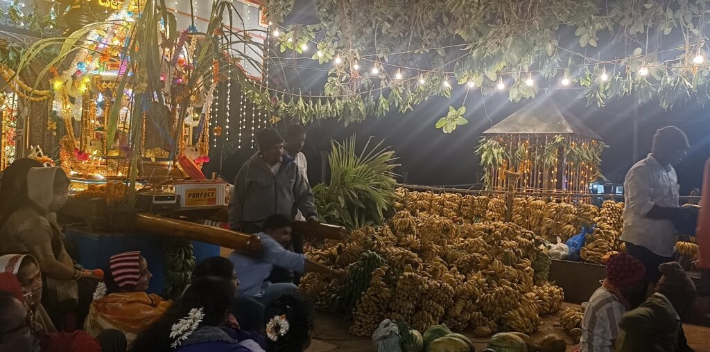 ಹೌದು…ಉತ್ತರ ಕನ್ನಡ ಜಿಲ್ಲೆಯ ಅಂಕೋಲಾ ತಾಲೂಕಿನ ಬೆಳಾಬಂದರ ಗ್ರಾಮದಲ್ಲಿ ವೀರಭದ್ರೇಶ್ವರ ದೇವರ ಭಜನಾ ಸಪ್ತಾಹದ ಅಂಗವಾಗಿ ಶ್ರೀ ದೇವರ ರಥೋತ್ಸವವು ಶ್ರದ್ಧಾ ಭಕ್ತಿಯಿಂದ ನೆರವೇರಿತು. ಈ ಸಂದರ್ಭದಲ್ಲಿ ಗ್ರಾಮದ ರಥ ತೆರಳುವ ರಸ್ತೆಯುದ್ದಕ್ಕೂ ತಳಿರು ತೋರಣಗಳಿಂದ ಶೃಂಗಾರಿಸಲಾಗಿದ್ದು,ವಿದ್ಯುತ್ ದೀಪಗಳಿಂದ ಅಲಂಕರಿಸಲಾಗಿತ್ತು,ಬಣ್ಣ-ಬಣ್ಣದ ರಂಗೋಲಿ ನೋಡುಗರ ಕಣ್ಮನ ಸೆಳೆಯಿತು,ರಥದ ಮುಂಬಾಗದಲ್ಲಿ ಸ್ಥಳೀಯರಿಂದಲೇ ಹೇಳಲಾಗುತ್ತಿದ್ದ ಭಜನೆ ಗೀತೆಗಳು,ಪಂಚಾವಾದ್ಯಗಳ ಇಂಪು ಕೇಳುಗರನ್ನು ಮಂತ್ರಮುಗ್ದರನ್ನಾಗಿಸಿತ್ತು.